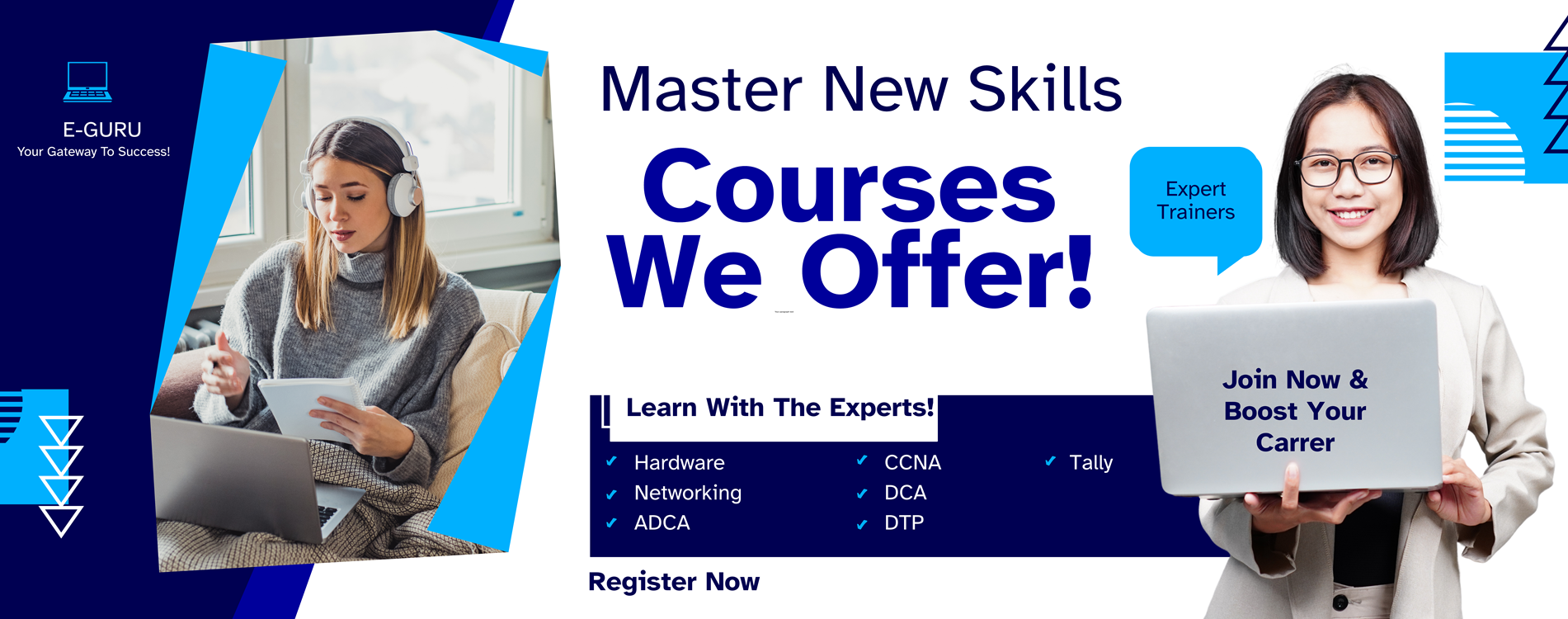 To join an e-GURU course, you need 12th pass or you should be a college student. Specialized courses are available for IT graduates & engineers.
